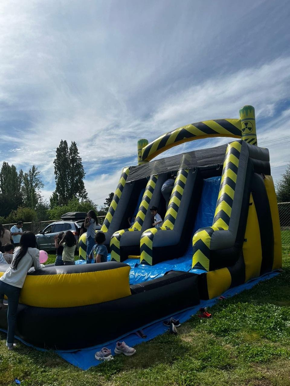 ¡¡ Emocionante tobogán de 6.5 metros de largo con 2 resbalines para deslizarse a su piscina de gran tamaño, un tobogán de 4.8 metros de altura y 4 metros de ancho la diversión será fenomenal 🥳.
